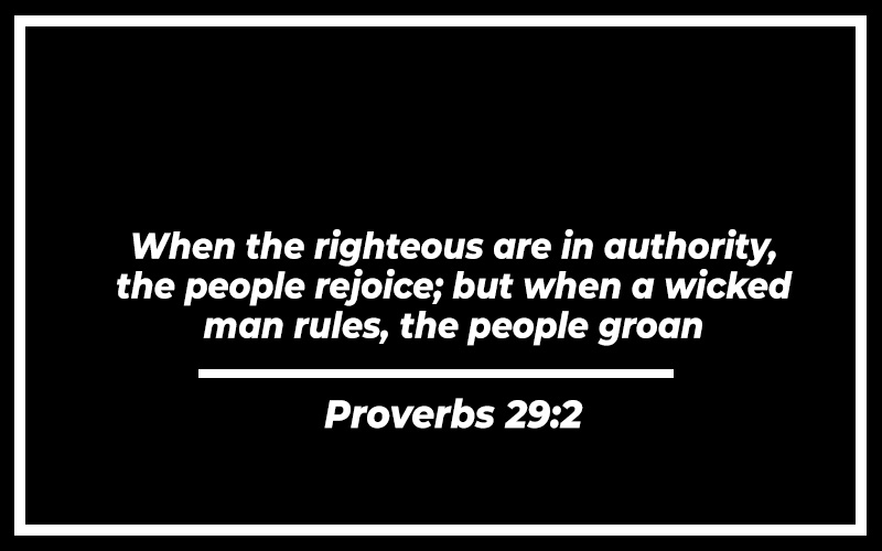 “When the righteous are in authority, the people rejoice; but when a wicked man rules, the people groan.” – Proverbs 29:2